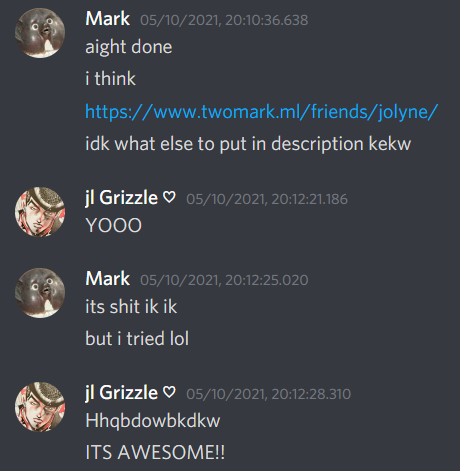 She pretty cool... she lets me ramble to her, and i'm pretty sure she's the only person interested in my website, so that's nice (proof). Uh, we met while trying to solve an ARG... the ARG is dead now tho, which sucks.